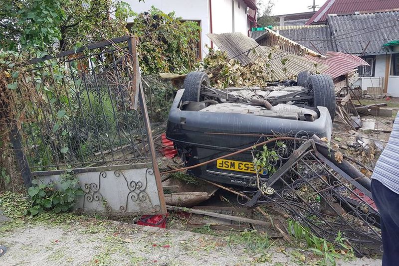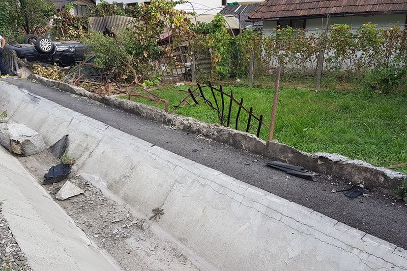 Accident grav în Vadu Izei.Un șofer s-a lovit de un cap de podeț după care a rupt un gard și s-a răsturnat pe acoperișul unei anexe