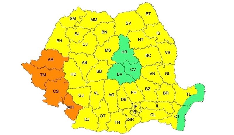 Zone afectate: județele Arad, Timiș, Caraș-Severin și Mehedinți