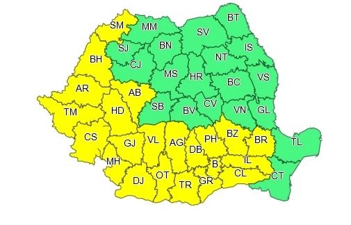 ATENȚIONARE METEOROLOGICĂ - COD GALBEN
