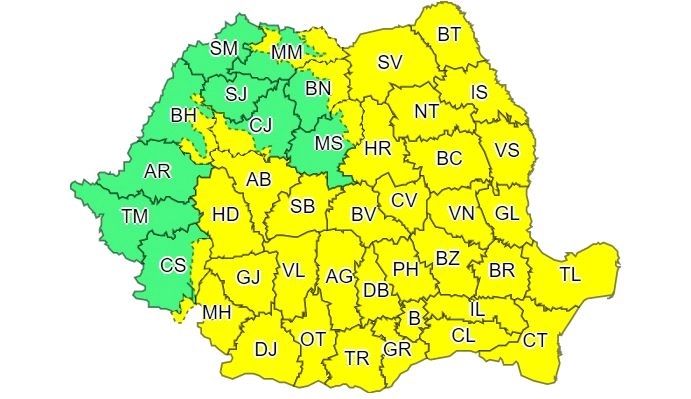Avertizări de vreme rea în România - Harta cu zonele puternic afectate