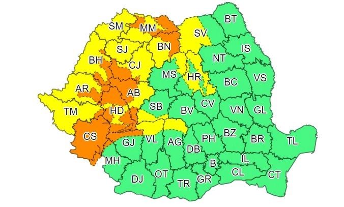 ”În Carpaţii Occidentali, vestul Carpaţilor Meridionali şi nordul Carpaţilor Orientali, precum şi în sudul Banatului se vor acumula cantităţi de apă ce vor depăşi 40…50 l/mp şi izolat 60…70 l/mp”, transmite ANM.