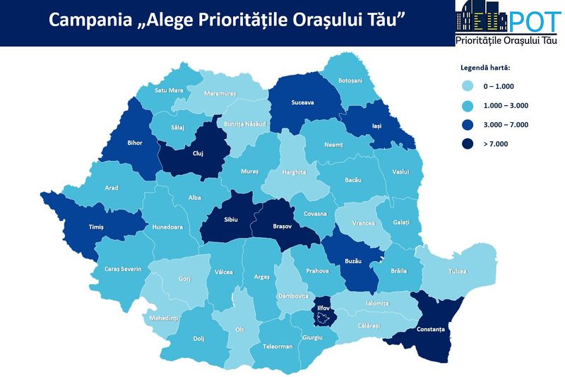 Peste 150.000 de accesări ale chestionarului online și peste 100.000 de răspunsuri individuale venite din partea cetățenilor la nivel național. Acestea sunt datele campaniei „Alege Prioritătile Orașului Tău”!