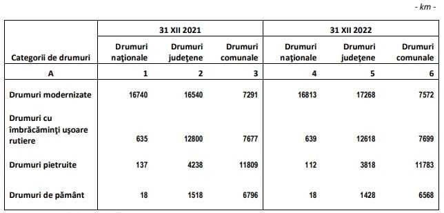 LUNGIMEA CĂILOR DE TANSPORT DIN ROMÂNIA - DRUMURI PUBLICE, la 31 decembrie 2022