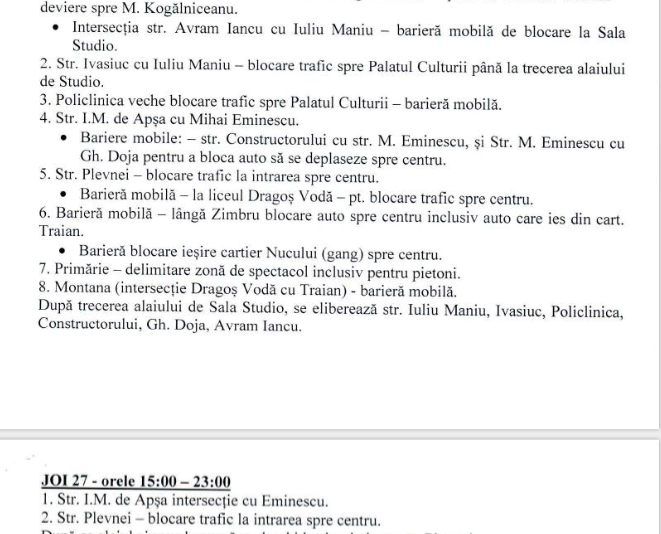 Pentru buna desfășurare a Festivalului de Datini și Obiceiuri de Iarnă ”Marmația” care va avea loc în 27 decembrie, circulația rutieră va fi restricționată pe mai multe străzi din oraș.