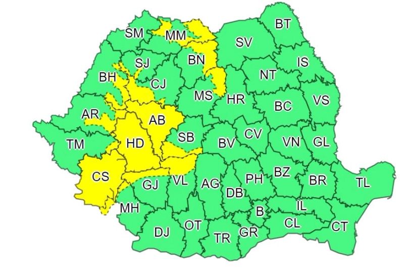 ANM a publicat o nouă avertizare valabilă din data de 10 iulie de la ora 12 până la 22. Mai multe zone sunt vizate de instabilitate termică.