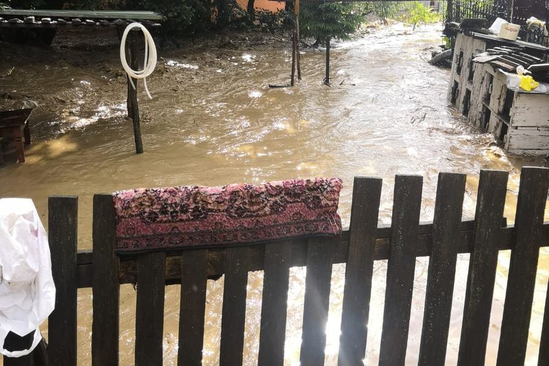 După o ploaie torențială din zonă, trei locuințe au fost inundate, curțile anexe și beciurile.