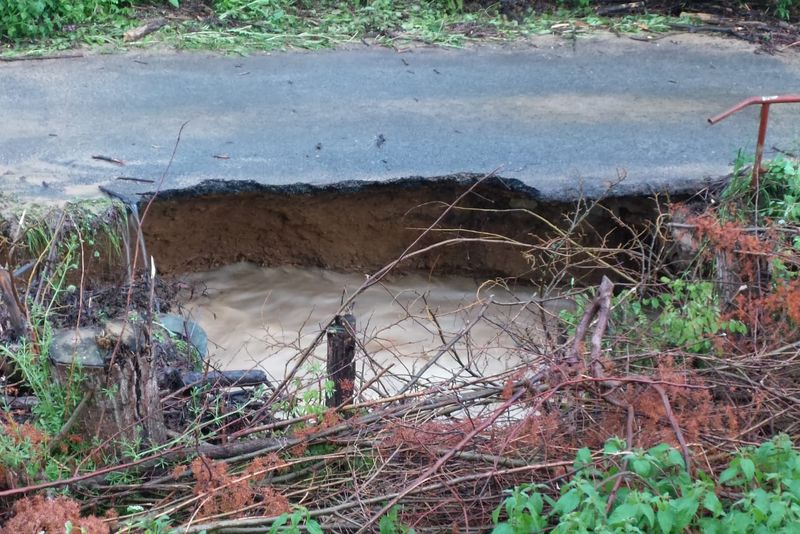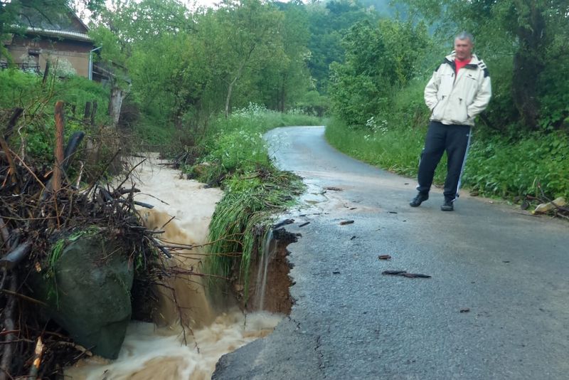 Drum distrus și gospodării inundate