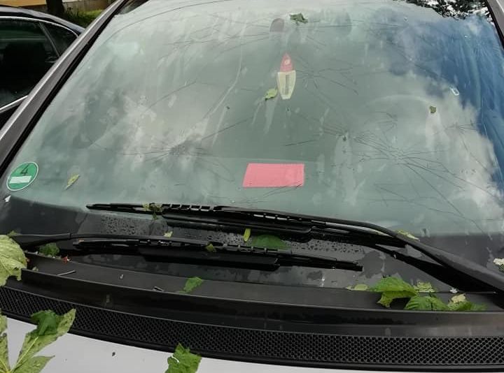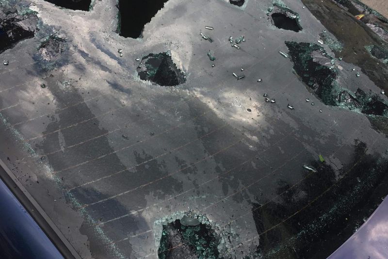 Aproximativ 200 de vehicule au fost avariate, mai mult de jumătate dintre ele având parbrizele sparte și capotele distruse.