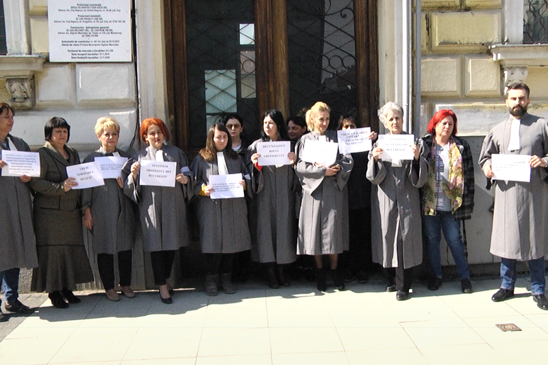 Grefierii din Sighetu Marmației au protestat în fața Judecătoriei