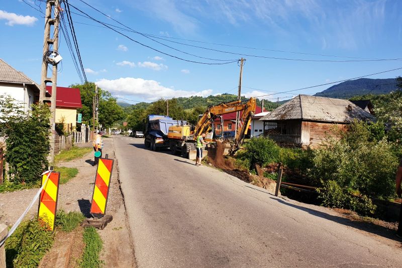 Șuvoaiele de apa au transportat aluviuni, material lemnos și pietriș.Drumul Național a fost spălat pe o lungime de 200 de metri, respectiv a fost afectat terasamentul din zona podețului.S-a intervenit în regim de urgență pentru decolmatarea podețului și asigurarea traficului rutier.Ieri și astăzi s-a circulat pe un singur sens.