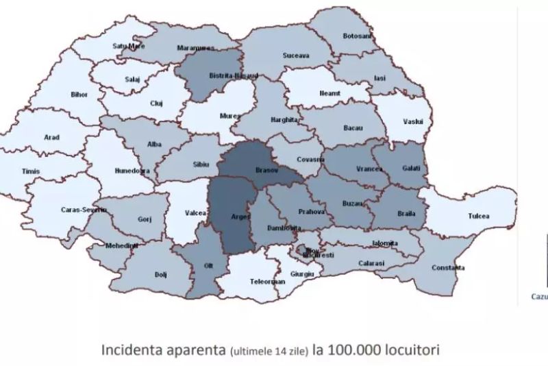 - în județele Argeș și Brașov se înregistrează o rată de incidență cumulata peste 50/100.000 locuitori.