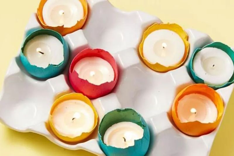 Atunci când fierbem și vopsim ouă, unele se crapă. Decojește-le cu grijă în așa fel încât să-ți rămână câteva jumătăți. Le poți folosi pe post de suporturi pentru lumânări de tip pastilă. Pune-le pe masa de Paște și bucură-te de lumina din cojile colorate.