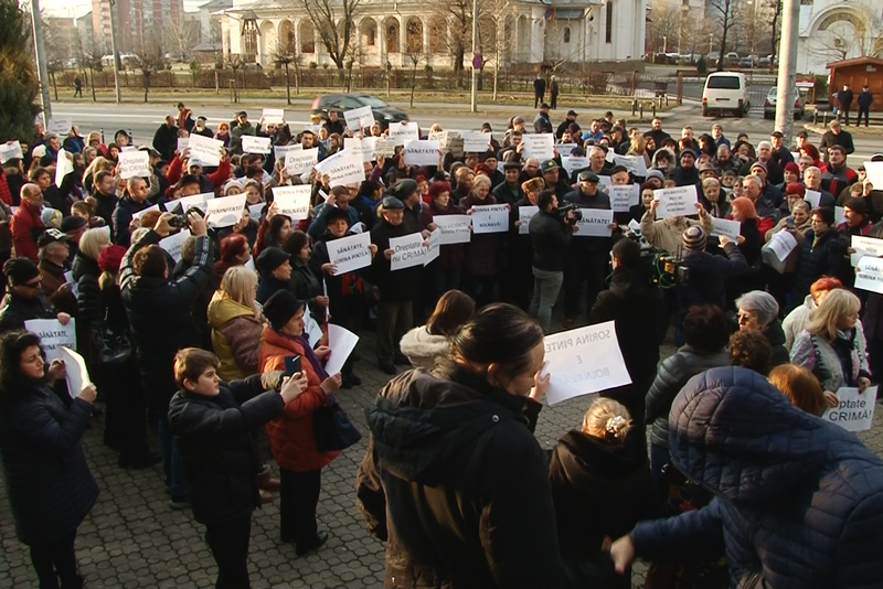 Oamenii au scandat mesaje de susținere pentru Sorina Pintea și s-au rugat pentru ea.