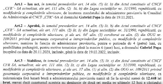 „Păi poți compara numirea unei comcompanii ca CFR cu așa ceva?! (...) Mai arăt un document. CFR are foarte multi bani. O alta hotarare AGA, inainte de a veni dl Simu, cand era dl Popa, se spune ca numirea lui G. Popa, indemnizație brută se stabilește la nivelul sumei 12.448 de lei”, a menționat Anca Alexandrescu.