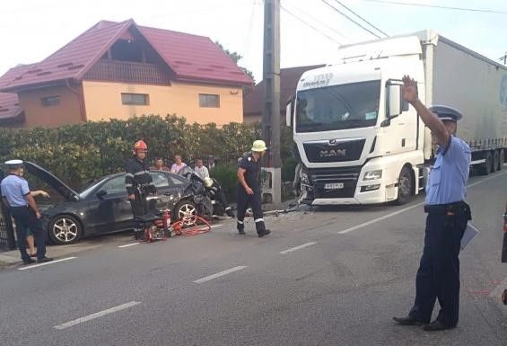 Trei autoturisme și un TIR s-au ciocnit la intrare în comuna Satulung